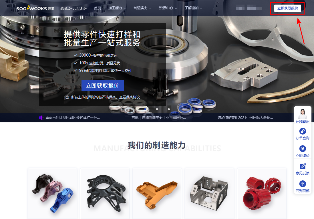 1. 在速加官網(wǎng)點擊【獲取報價】進(jìn)入自動報價頁面,并上傳圖紙