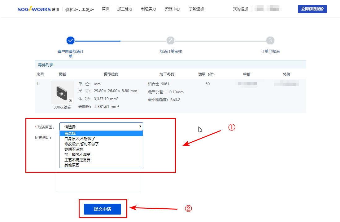 4. 點(diǎn)擊【零件名稱】,進(jìn)入訂單詳情頁面