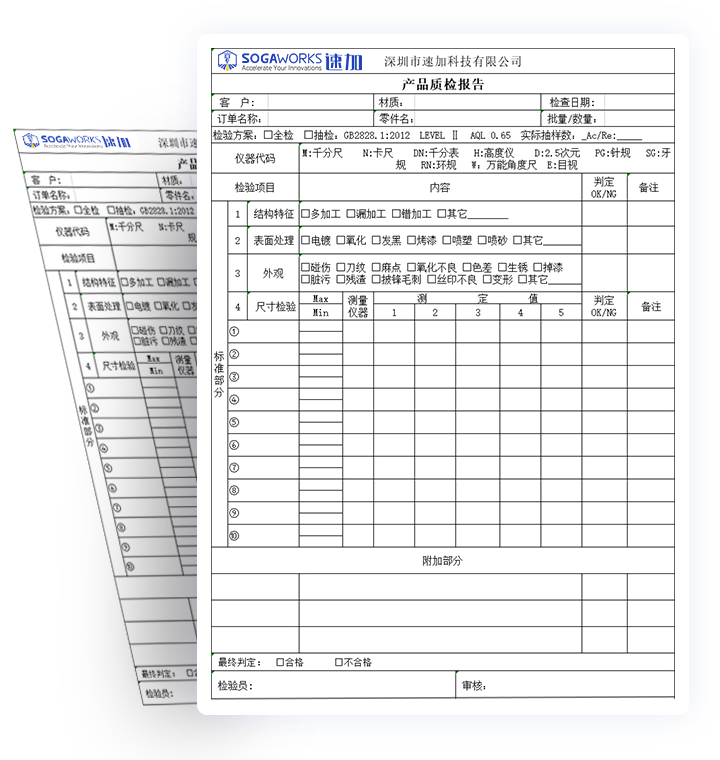 速加設(shè)有專業(yè)質(zhì)檢團(tuán)隊(duì),確保零件品質(zhì);對(duì)加工完的零件,發(fā)貨前進(jìn)行100%全檢。確保滿足您的要求。